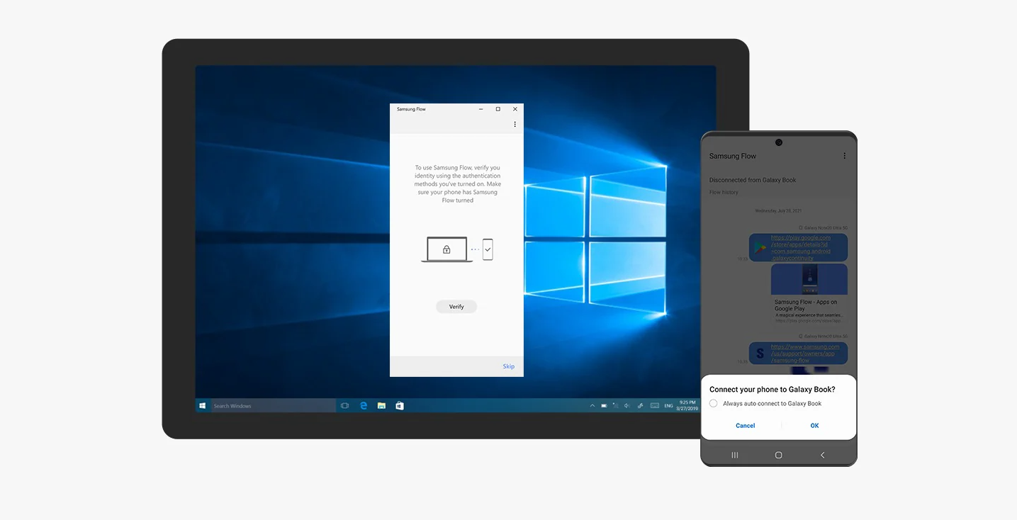 삼성 Flow를 통해 스마트폰 화면 제어, 핸드오버, 그리고 알림 동기화 기능을 통해 스마트폰과 컴퓨터 간의 연결을 최적화하여 콘텐츠를 더 큰 화면에서 즐겨보세요.